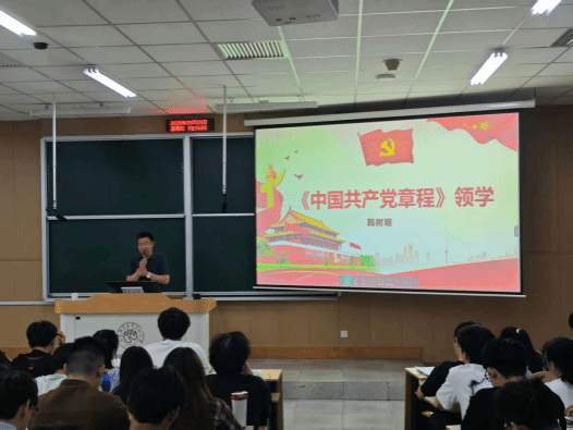 开班仪式结束后,韩树明领学《中国共产党章程》,带领全体学员全面深入学习党章的功能和定位、基本架构及主要内容等。