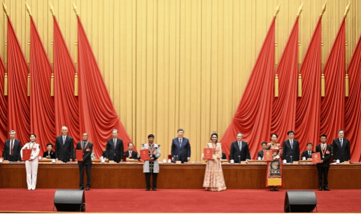 9月27日,全国民族团结进步表彰大会在北京举行。习近平、李强、赵乐际、王沪宁、蔡奇、丁薛祥、李希等出席大会。新华社记者 谢环驰 摄