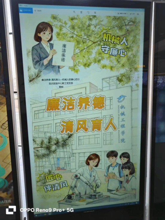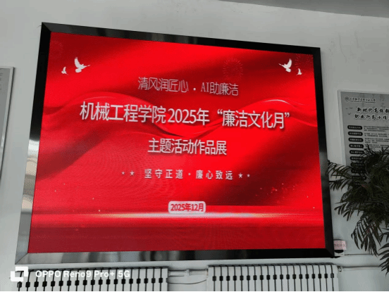 在逸夫楼一楼大厅组织开展“清风润匠心 AI助廉洁”2025年“廉洁文化月”主题活动作品展播,以创新载体推动廉洁教育走深走实。
