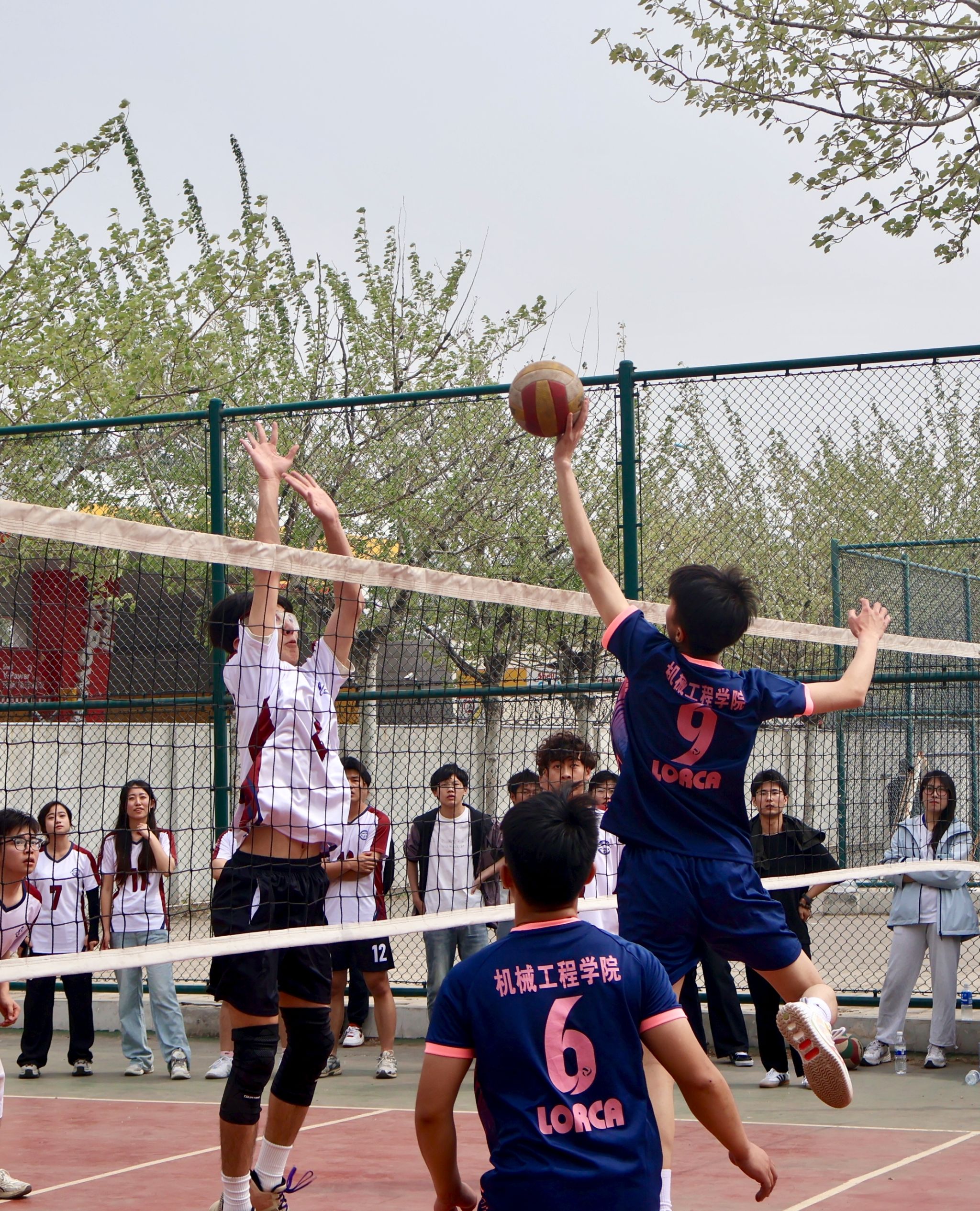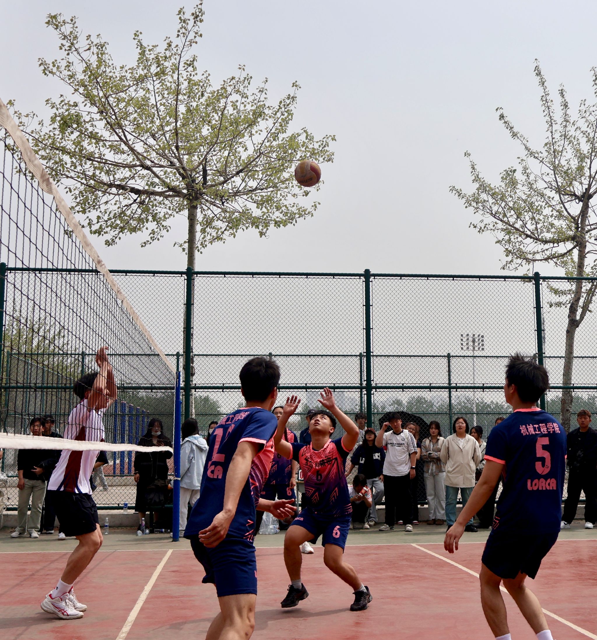 决赛现场战况跌宕起伏,机械学院排球队进入状态更快,打得气势如虹,首局比赛攻防两端发挥出色,多点开花,以15:10先下一城。次局对手调整状态,拼发球抓机会,以15:12扳回一城,将大比分扳平。
