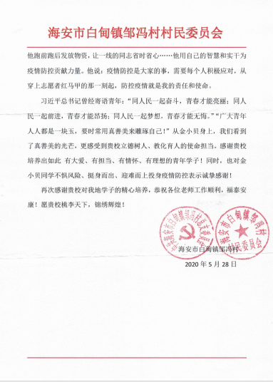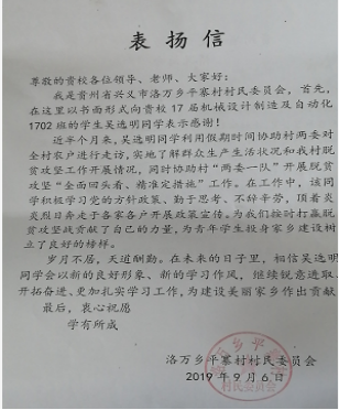 机制1811班学生金小贝同学在疫情防控期间主动请战,冲在一线,成为抗击疫情的一名“列兵”,展示着新时代青年的责任与担当。机自1803刘志婷在家乡疫情防控中,奉献了青春和汗水,彰显了青春责任和担当。工业1701崔迪帅外出游玩时遇到陌生女孩落水,奋不顾身跳入水中救起女生。机自1702吴选明帮助家乡脱贫攻坚贡献力量,受到当地的通报表扬。类似的学生有很多,学生在学校、社会充分展现了青年学子的奋斗、责任与担当,也是微密猫