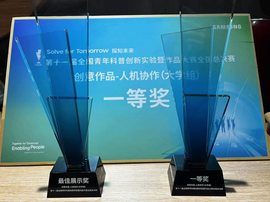 代表队凭借扎实的创新实力突出重围,最终斩获一等奖,并因作品的精彩呈现获得“最佳展示奖”。