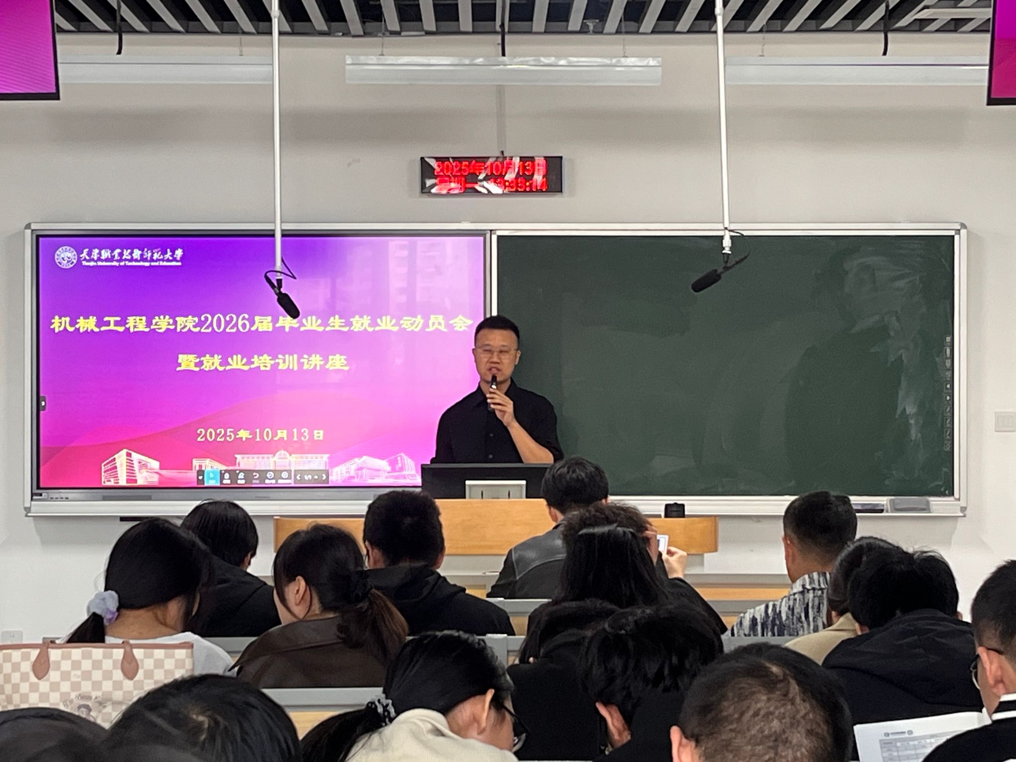 管宏龙围绕行业选择、企业招聘流程、简历制作、面试技巧、机械类专业考公分析等内容开展专题讲座。他结合多年辅导经验,通过生动案例为同学们讲解了求职过程中的实用策略,现场互动积极、反响热烈。