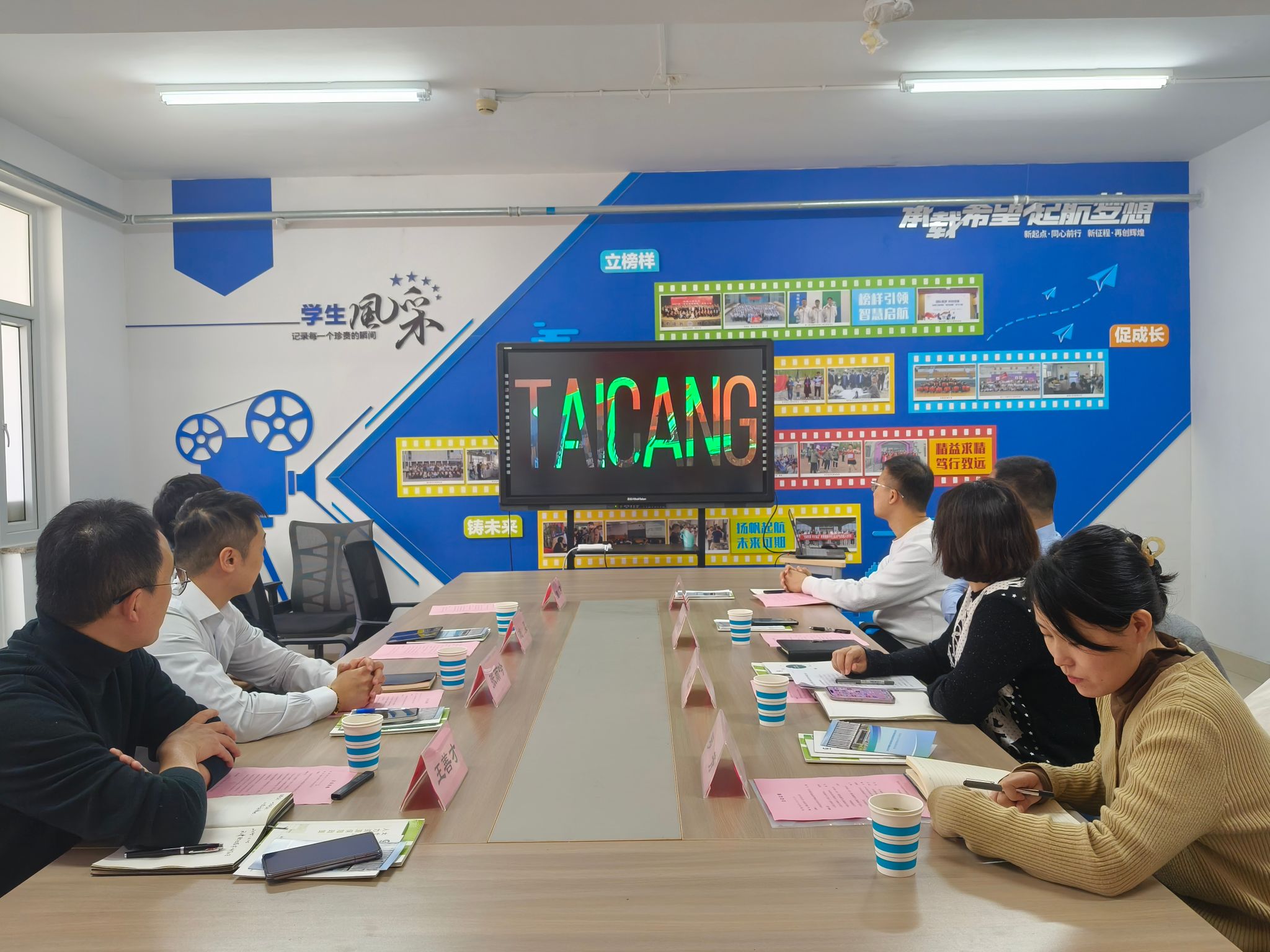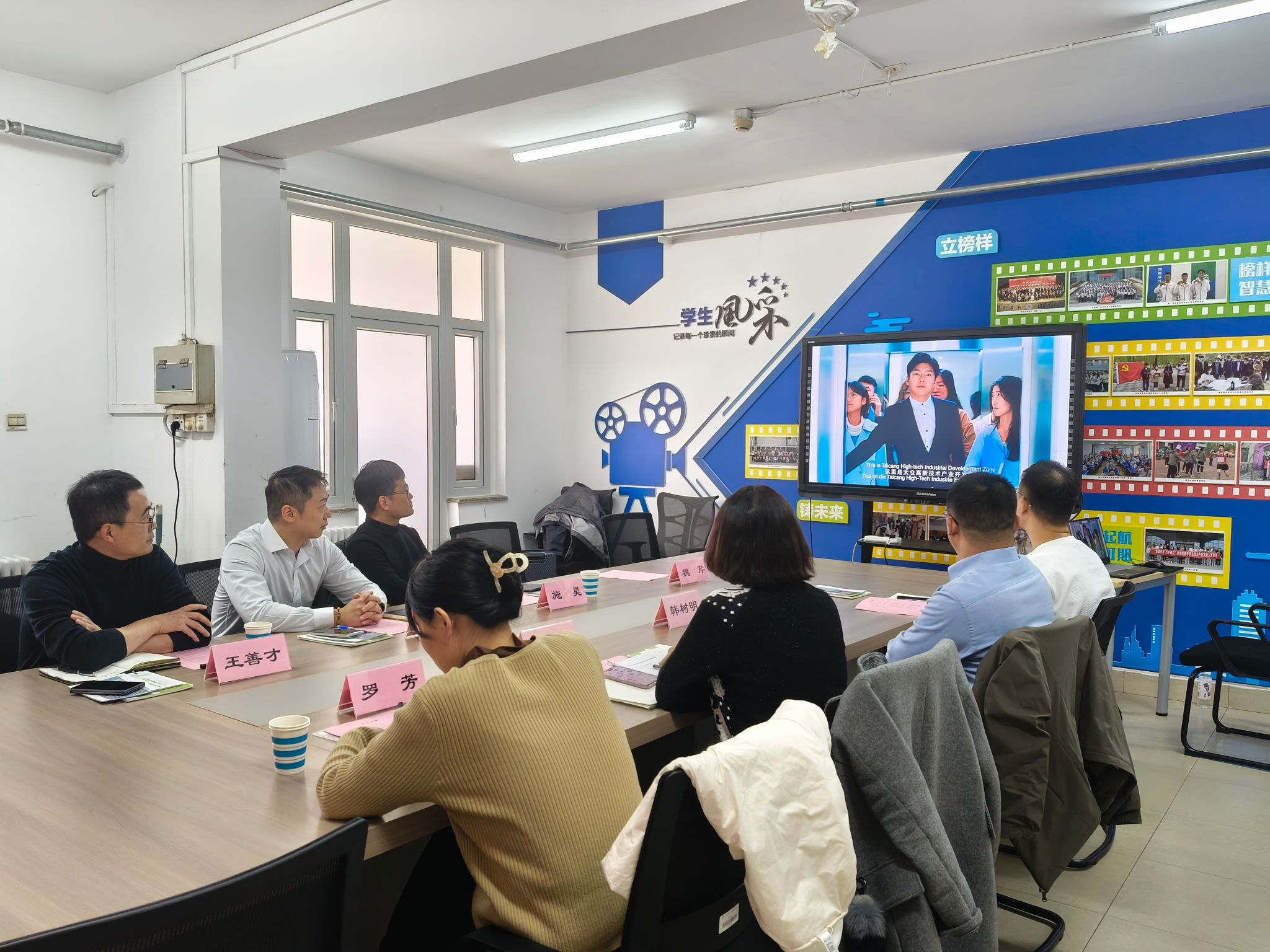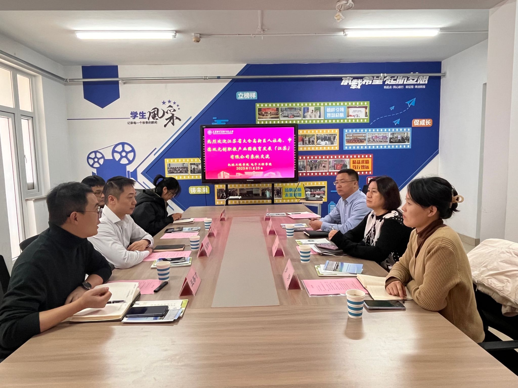 一站式学生社区、技能实训楼310室举办太仓高新区企业招聘集中宣讲会暨“访企拓岗”校企交流座谈会。江苏省太仓高新区人社局人才公寓科科长张雨吟、就业培训科副科长施昊、中德双元制职教产业园教育发展(江苏)有限公司人力资源部部长王善才、人力资源部专员魏芹,微密猫