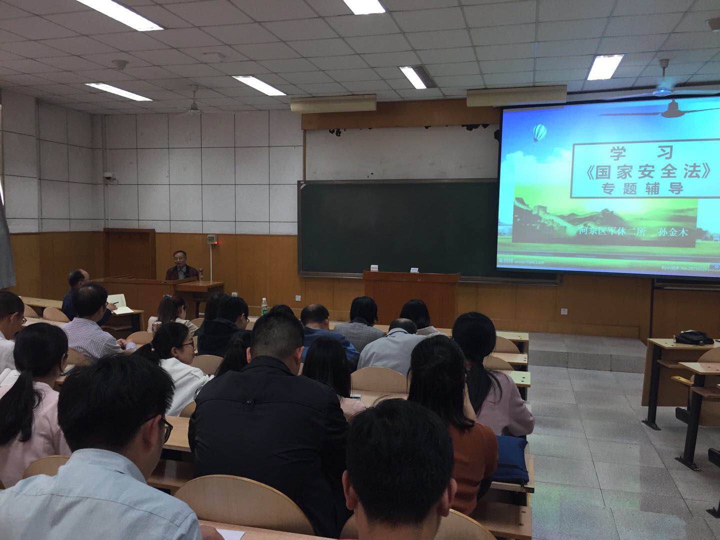 学院邀请“天津市关工委老战士宣讲团”成员(原军事交通学院政治教研室主任)孙金木教授,为学院全体教职工及学生代表200余人做《中华人民共和国国家安全法》辅导讲座。院党委书记张永丹主持会议。