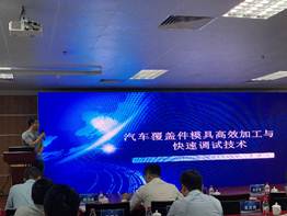 国家市场监督管理总局认证监管司工业品认证处副调研员薛岩、中国质量认证中心市场总监邢合萍、东莞市长安镇政府副镇长戴浩平等相关政府主管部门领导、全国模具标准技术委员会副秘书长陈文琳教授以及广汽集团、比亚迪汽车、天汽模、深圳模德宝等企业专家两百余人。各领域相关专家做了十二场精彩的大会特邀报告,涵盖汽车模具设计、制造、调试、失效分析、质量管理、智能系统集成、企业认证等诸多领域。会上,袁斌先做了“汽车覆盖件模具高效加工与快速调试技术”的大会报告,介绍了工程实验室近年来在汽车覆盖件模具高效加工和快速调试方面与企业深度合作取得的一些进展,受到了与会代表的热烈欢迎和积极回应。