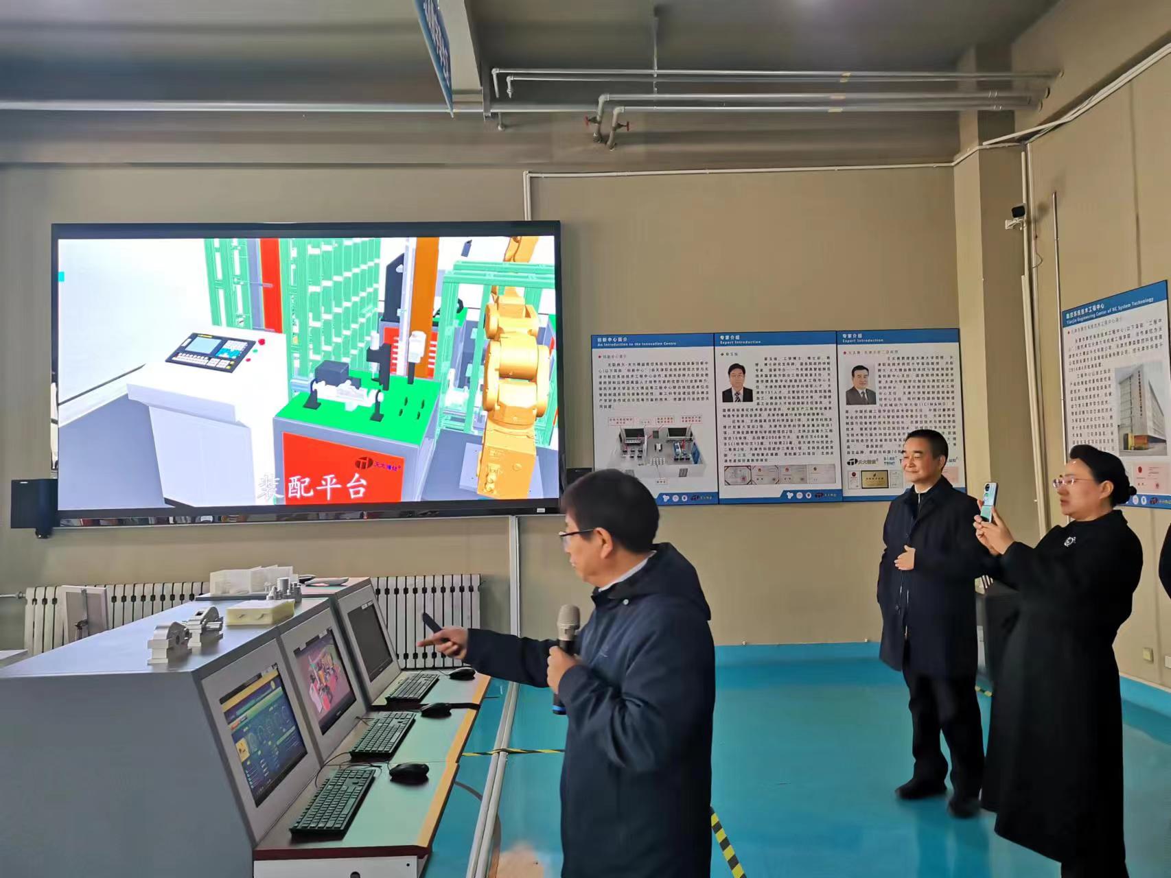 学院党委书记郝评,院长蔡玉俊(学校科研处处长)和副院长蔡兰蓉等人带领保定市考察调研团参观了学院近年来的突出成绩展、天职师大-天大精益数控系统与智能制造装备创新中心及学院教师自主研发的部分教学仪器与设备。