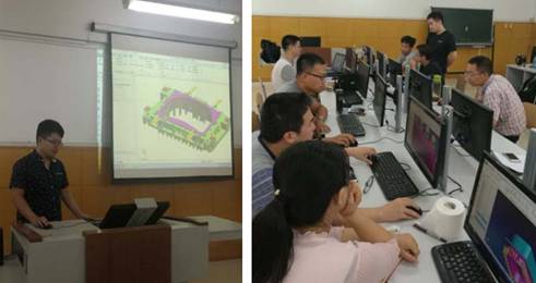 2017 7 18 -28 日期间,学院14名骨干教师赴天津汽车模具股份有限公司进行了为期两周的汽车覆盖件模具三维设计培训。培训方派出两位在汽车覆盖件三维设计方面有丰富设计经验的工程师对教师们进行培训。工程师对汽车覆盖件模具设计的整体流程进行了详细的讲解。对汽车模具设计过程中的一些设计技巧和方法进行了示范。为了提升老师们对汽车覆盖件模具的实际了解,理解汽车模具设计过程中的一些结构,参训教师还深入天津汽车模具股份有限公司多个工厂,进行实地学习。