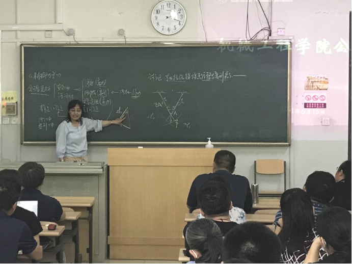 周丽军老师的授课内容是《材料力学》课程的“轴向拉压基本变形简单杆系铰接点位移的计算方法”。周老师运用生动简明的教学语言、精美的板书设计,讲解位移与变形量的几何关系,培养学生分析解决工程实际问题的能力,通过工程案例教学激发学生的爱国主义情怀,引导学生树立正确的人生观。